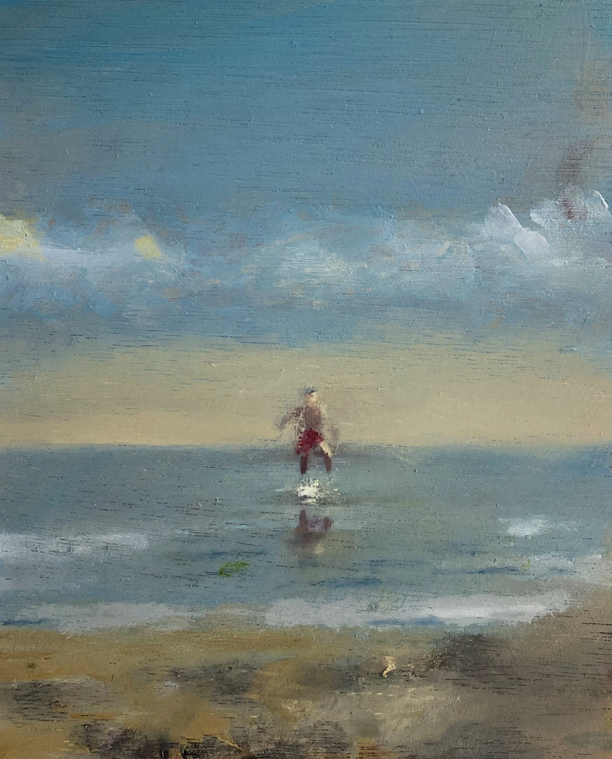 ‘Figure on a Beach (study)’, encaustic medium on wood panel, 10 x 13 cm (4 x 5 inch). Sold.