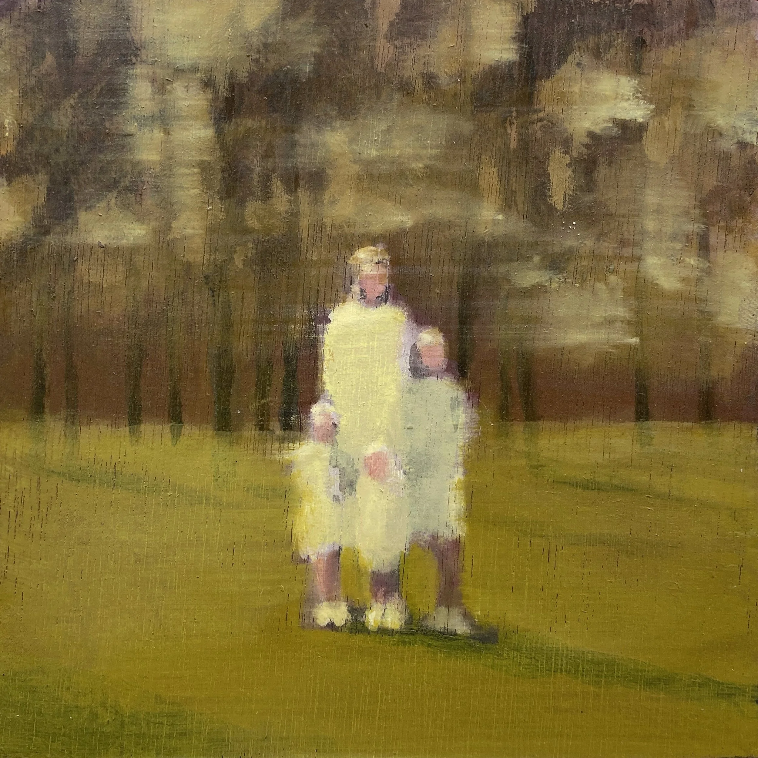 ‘Friends Walkings’ , egg tempera and oil on wood panel, 13 x 13 cm, (5 x 5 inch). Sold.