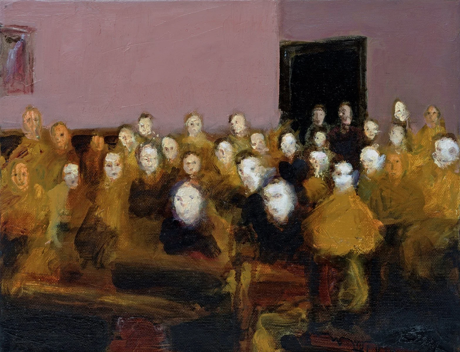 ‘The Class’, oil and mixed media on canvas, 51 x 61 cm, (20 x 24 inch). Sold.
